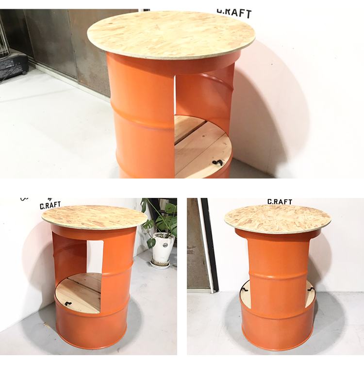 ドラム缶を大胆にカット、溶接しワイルドでアメリカンなテーブルに仕上げています。