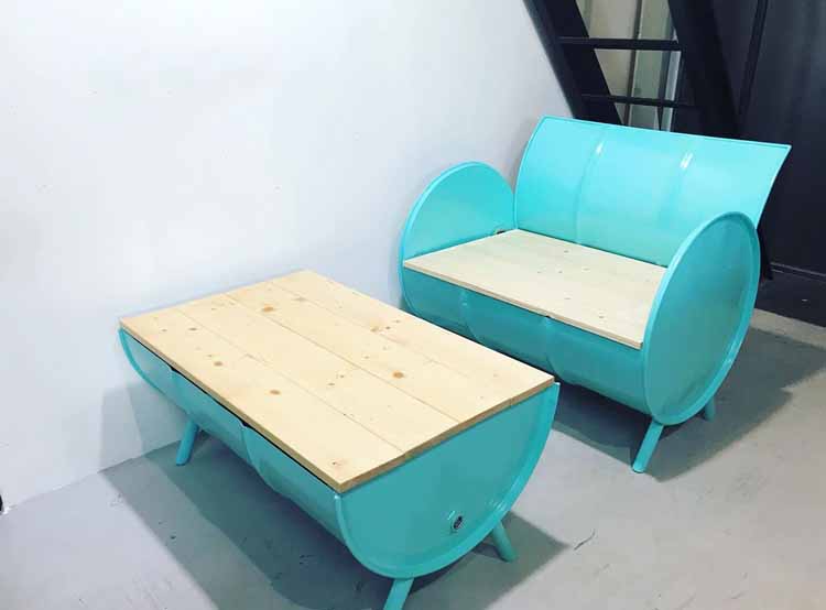 ドラム缶をリメイクしたテーブル&ソファー(ベンチ)セットです。