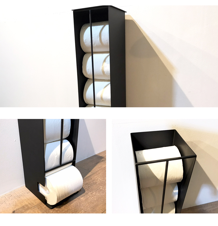 鉄板と丸鋼を融合したアイアン製のトイレットペーパーストッカーです。