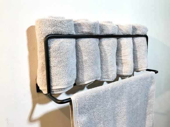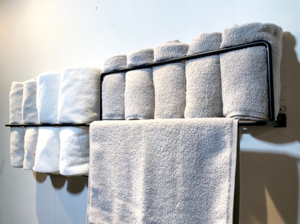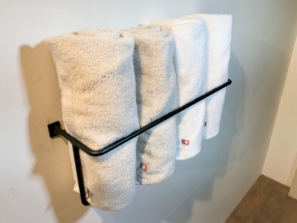 写真のようにタオル掛けをはじめ、その他傘掛けや洋服掛け等、その他多用途にお使いいただけます。
