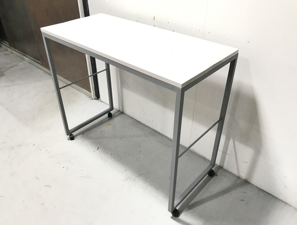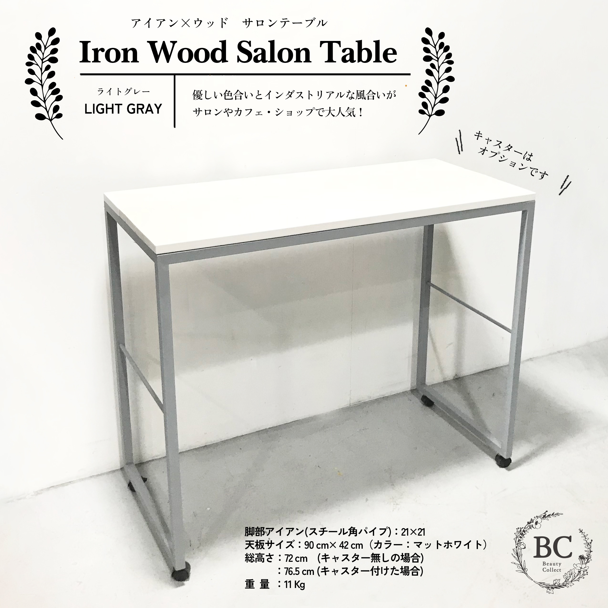 脚部はアイアン製でマットなライトグレー塗装仕上。天板はウッドを採用し、表面をマットホワイトでラフ塗装仕上を施しています。